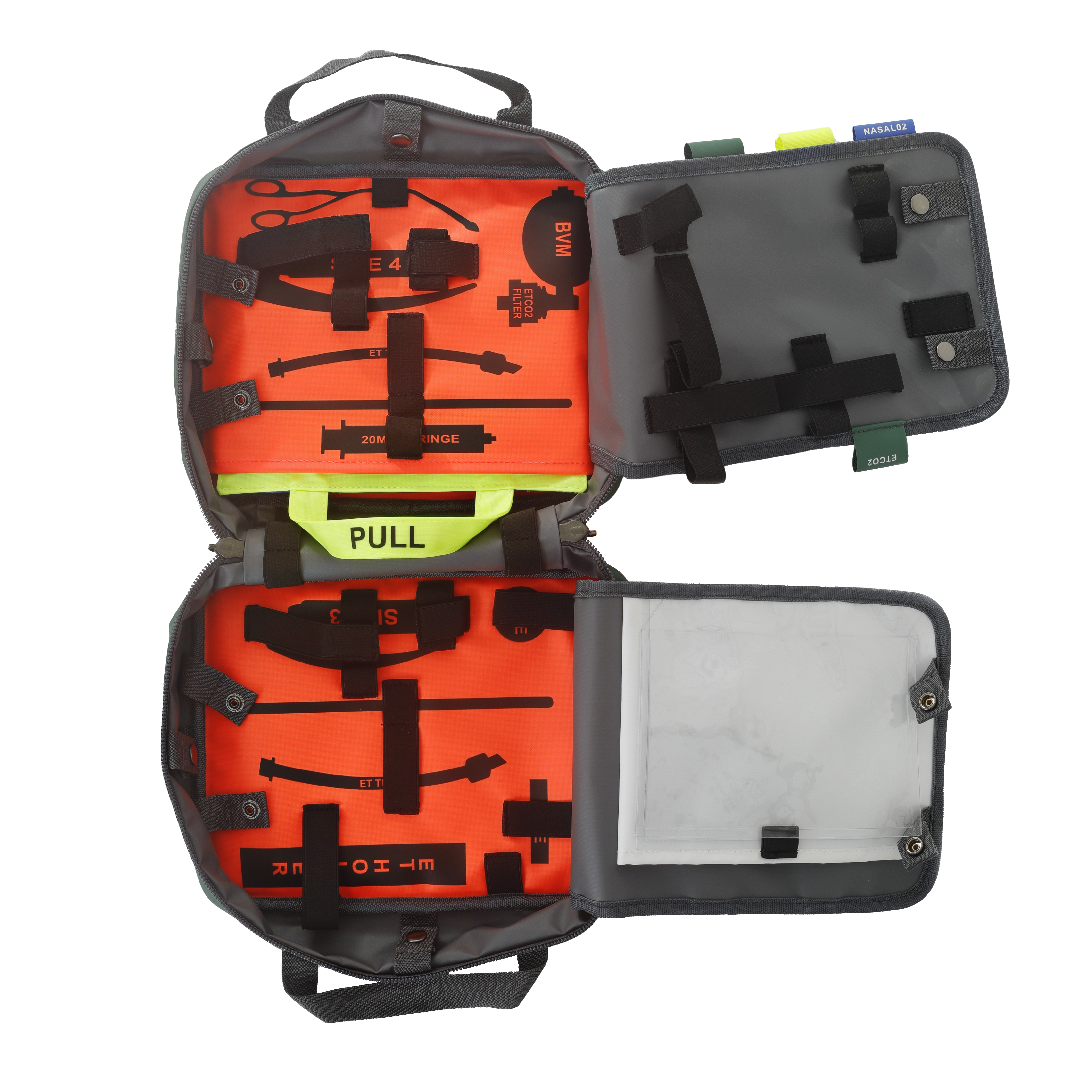 - Pull-out surgical airway kit dump for MERT (yellow) and CMT (Blue)